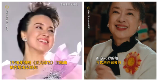 这部电影能请到翁倩玉,堪称一大惊喜。很多年轻观众看电影时或许认不出她,但走出电影院一搜便会恍然大悟。她的那首《爱的奉献》,自90年代起作为央视《正大综艺》主题曲广为传播,也让她开始被大陆观众认识,一句“爱是正大无私的奉献”能唤醒一代人的记忆。